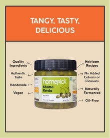 Experience the pure tanginess of Homepick's Khatta Kerda, a testament to simplicity & natural flavours. In this unique preparation, Kerda takes center stage, undergoing a meticulous process that excludes the use of spices or oil.