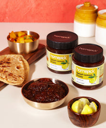 Indulge in the perfect balance of sweet & tangy with Homepick's Sweet Lemon Pickle. This delightful creation, with its khatta meetha flavour, has become one of our best-sellers, beloved by all age groups. Savour the harmonious blend of sweetness & tanginess, elevating every meal with a burst of irresistible taste. Bring home the joy of this crowd-pleaser & add a touch of khatta meetha magic to your culinary adventures.